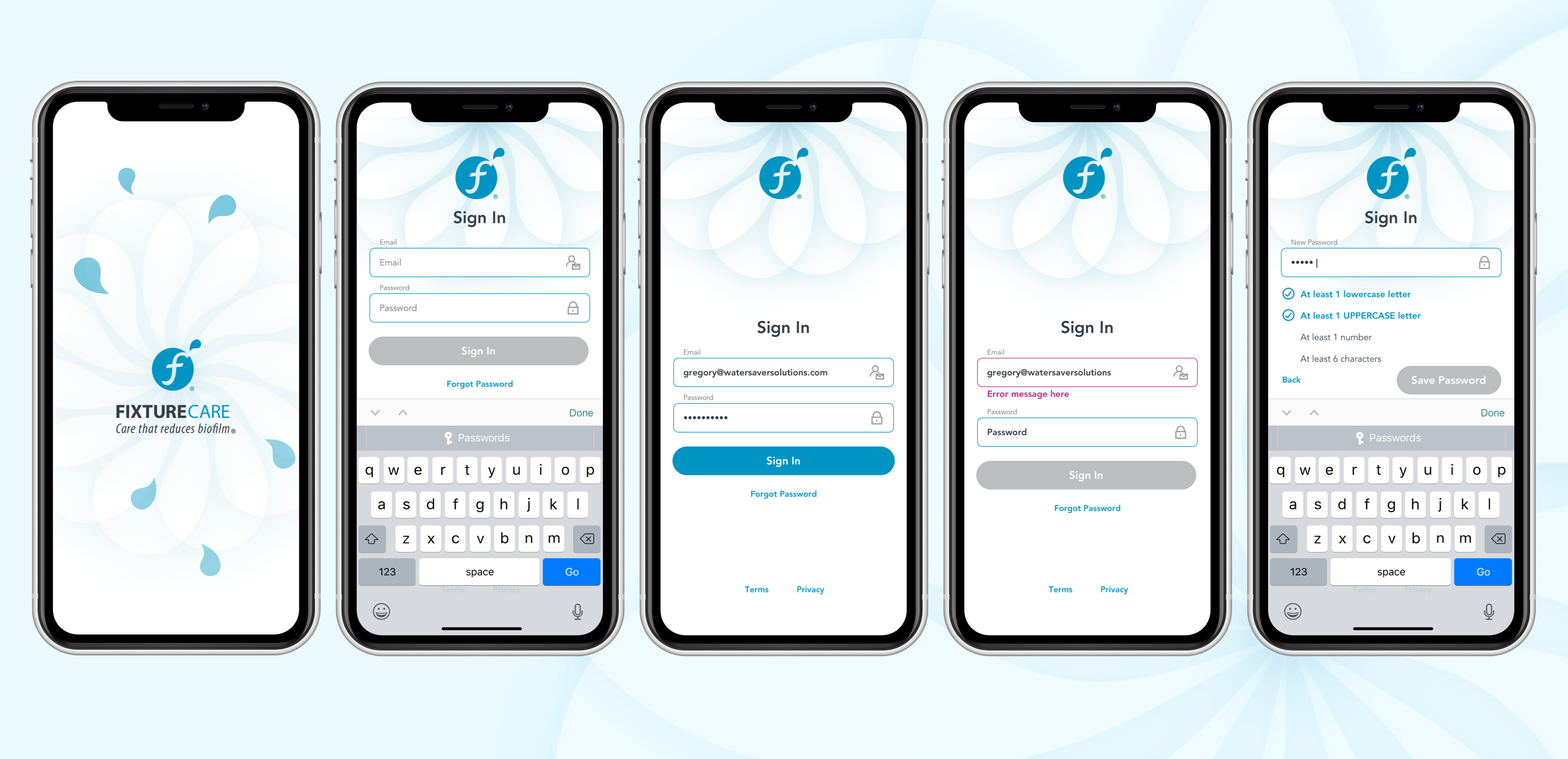FixtureCare keeps hospital patients safe and medical facilities in compliance with fixture cleanse and disinfection services managed by a hyper-efficient mobile app. This iterated version of the app elements the need for QR codes previously used to scan sink fixtures. The new version provides a new interface for customers and FixtureCare technicians.