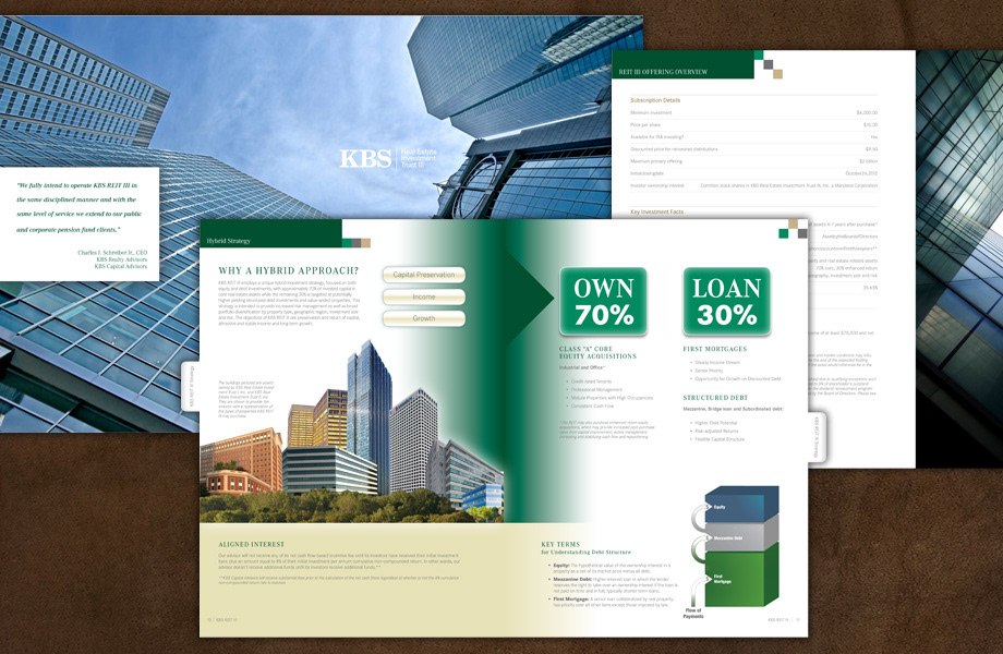 This 16 page promotional brochure highlights the investment opportunities and features offered by KBS's REIT III investment product.